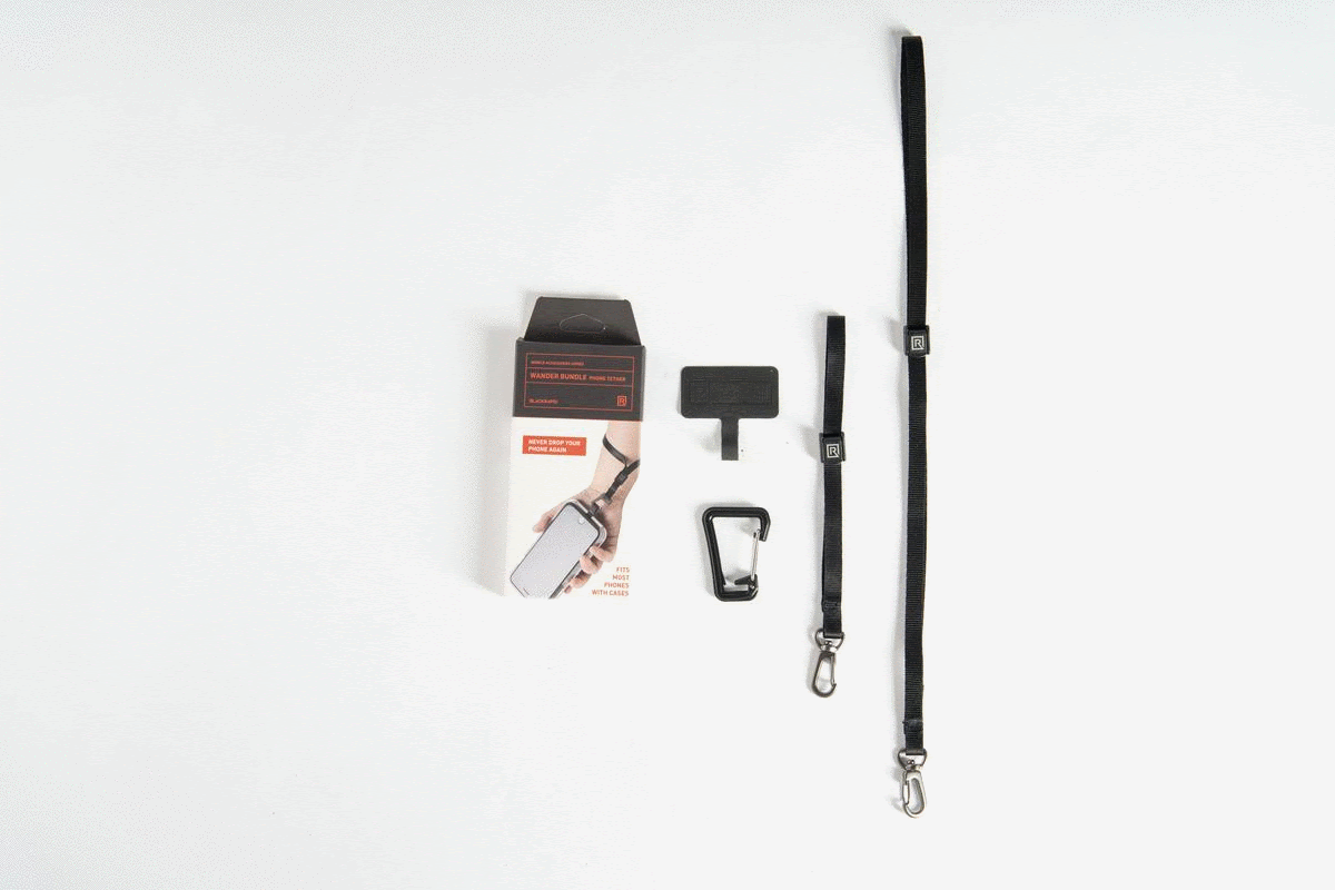 Our Starter Kits come with items that will ensure your smart device stays protected and near you when making action videos. The BlackRapid WandeR Phone Tether system works with many different types of smartphones and cases. Simply slide the TetheR-Tab directly into your phone case, placing the loop through the charging port. Then, attach either the wrist tether or the neck lanyard based on your preferred shot. Both tethers adjust around your neck or wrist to secure your phone while vlogging.